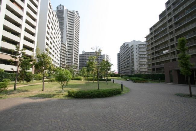 庭園都市の一角にある整ったマンションです。道路までに緑地帯がありゆとりを感じます。