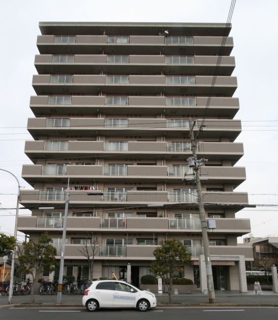 南海本線「七道」駅より南方向、駅より直ぐにある内川緑地を抜け、古くからの住宅街を約800m徒歩10分、「堺」駅まで約1.3Km、阪堺線「神明町」駅には徒歩2分の『九間町西2丁』にあります。一般住宅のところどころに小さな店舗や事務所や工場が混在する地域です。建物の南側にあるエントラスス前の道路は幅広く、歩道もゆったりしており、東西も道路となっているので機能的に優れる敷地となっています。平成12年、分譲:大倉建設 施工:山九により建築されたRC造り総戸数66のマンションです。敷地条件の良さを生かした設計になっています。総タイル張りで、落ち着きのあるシンプルなでデザインの外観です。錦西小学校までは道路を渡ってすぐ、月州中学校までは約500mです。食品スーパーのマルナカまで250m、玉出まで230m。町屋歴史館山口家住宅、鉄砲会館や堺伝統産業会館が徒歩圏内にあります。