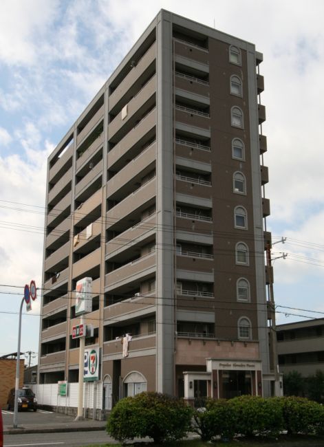 南海本線「石津川」駅から東方向へ約550m徒歩7分の泉北1号線の南側の『浜寺石津町中2丁』にあります。付近には、中規模のマンションも点在しているのですが、通りに面しては商店や会社事務所が並んでいます。隣地もセブンイレブンです。平成15年、分譲:第一プロパレス 施工:森組によって建てられたRC造り10階建て総戸数35のマンションです。南北に細長い建物で、総タイル張りの外観の配色バランスの美しいことと、周囲に高い建築物がないので目立つ存在です。浜寺石津小学校まで約220m、浜寺中学校まで約22.5Km。万代/KINSHOまで約1.0Km、コノミヤまで約700、コーナン/エディオンまで約1.0Kmです。